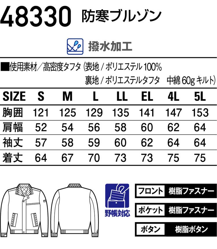 防寒着 防寒服 作業服 自重堂 防寒ブルゾン 48330