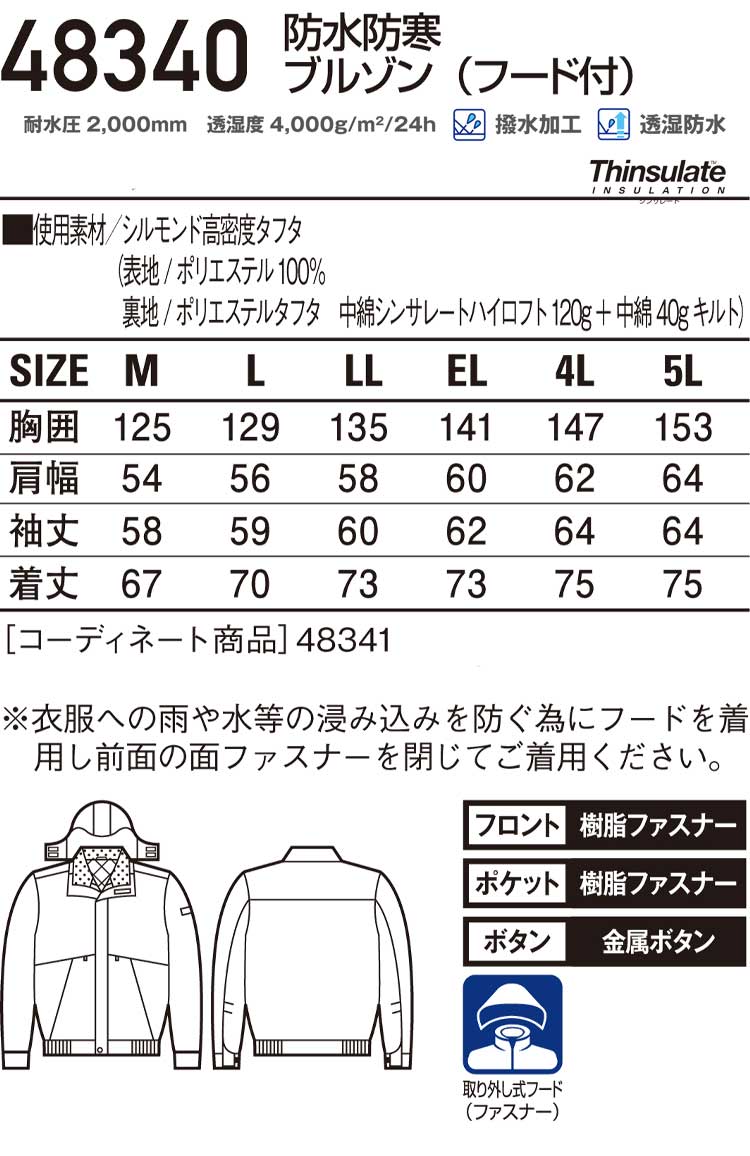 | 製品名: | 防水防寒ブルゾン(フード付き) |