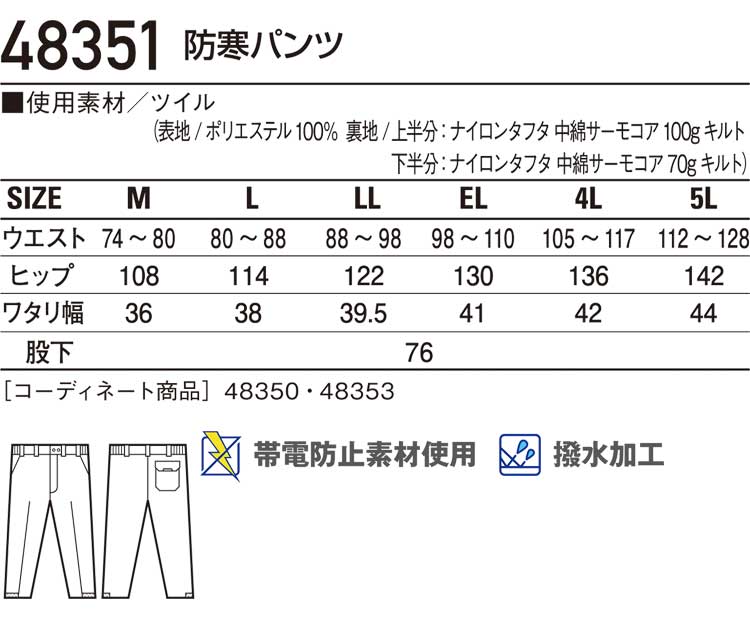 防寒着 防寒服 作業服 自重堂 防寒パンツ 48351