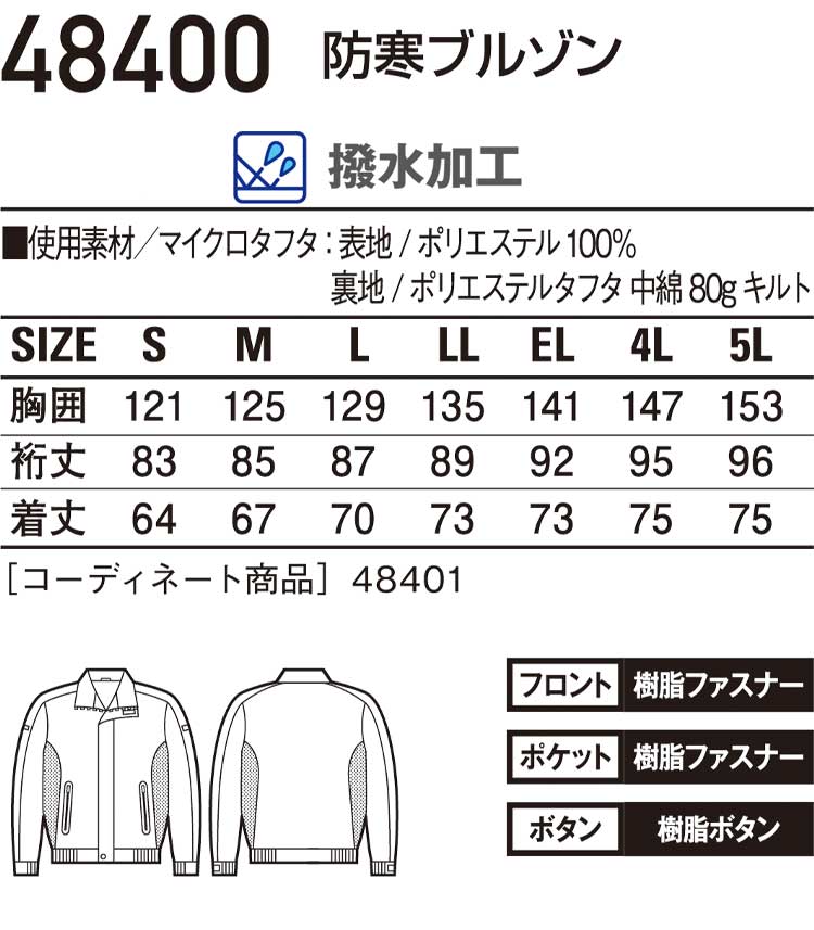 防寒着 防寒服 作業服 自重堂 防寒ブルゾン 48400