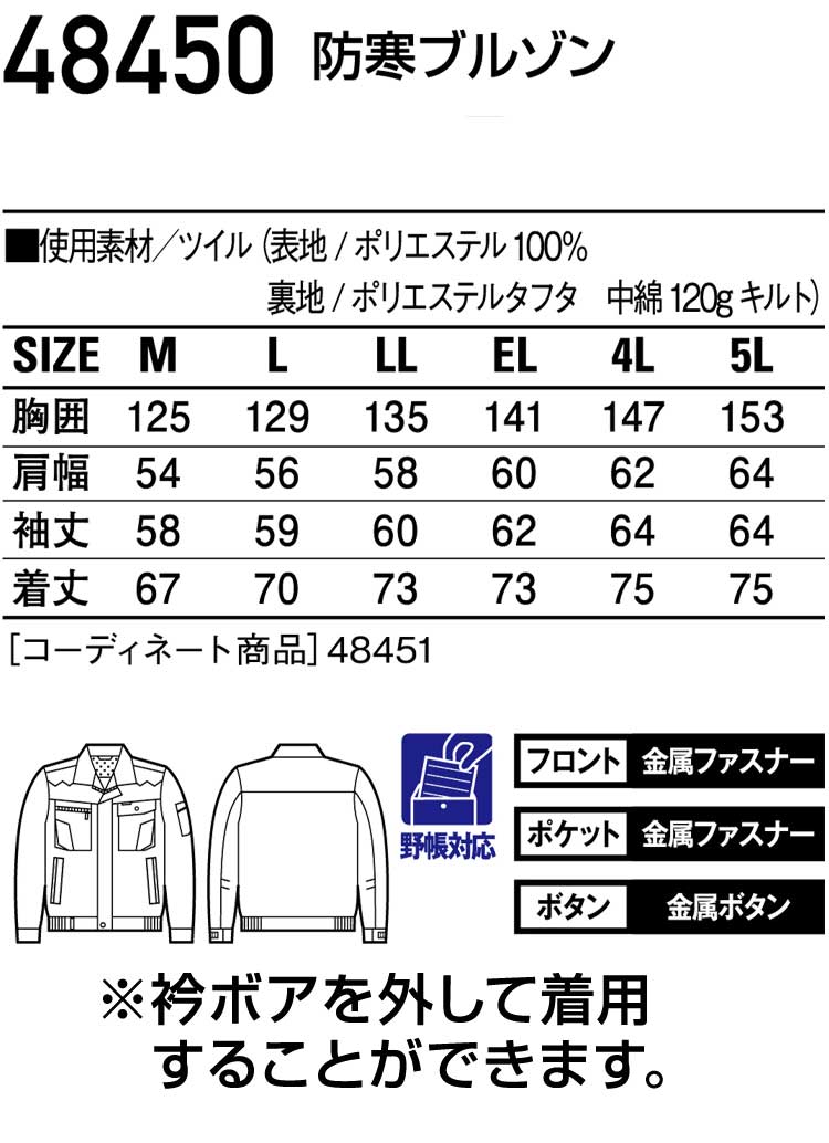 防寒着 防寒服 作業服 自重堂 防寒ブルゾン 48450
