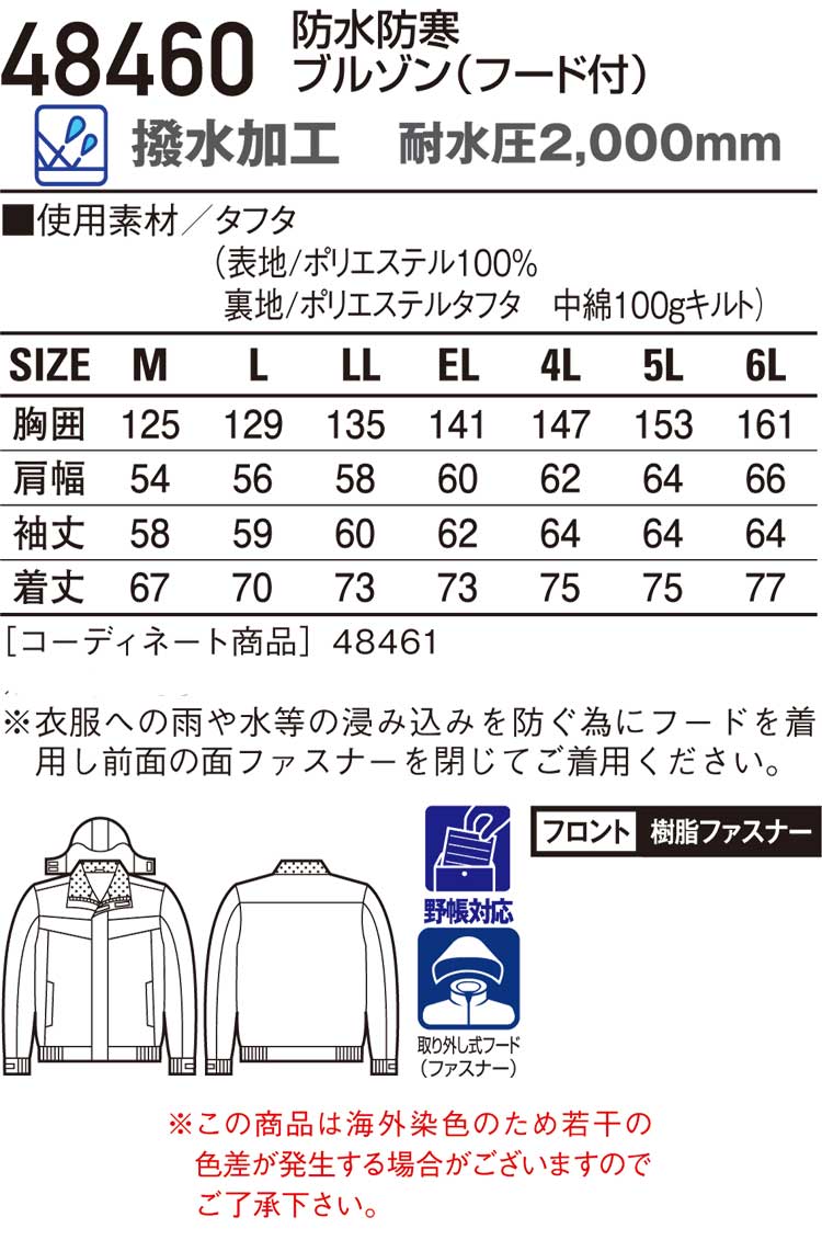 防寒着 防寒服 作業服 自重堂 防水防寒ブルゾン 48460