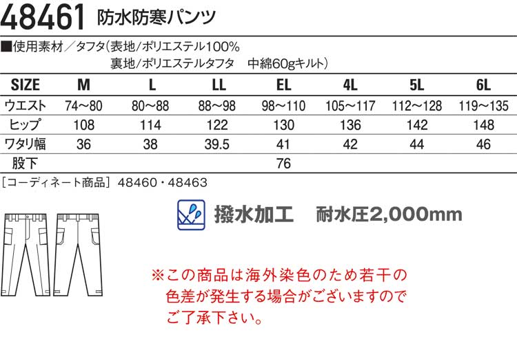 防寒着 防寒服 作業服 自重堂 防水防寒パンツ 48461