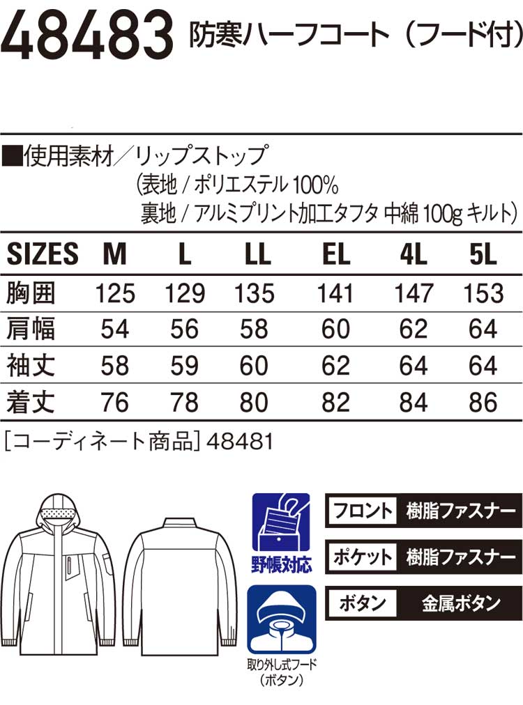防寒着 防寒服 作業服 自重堂 防寒コート 48483