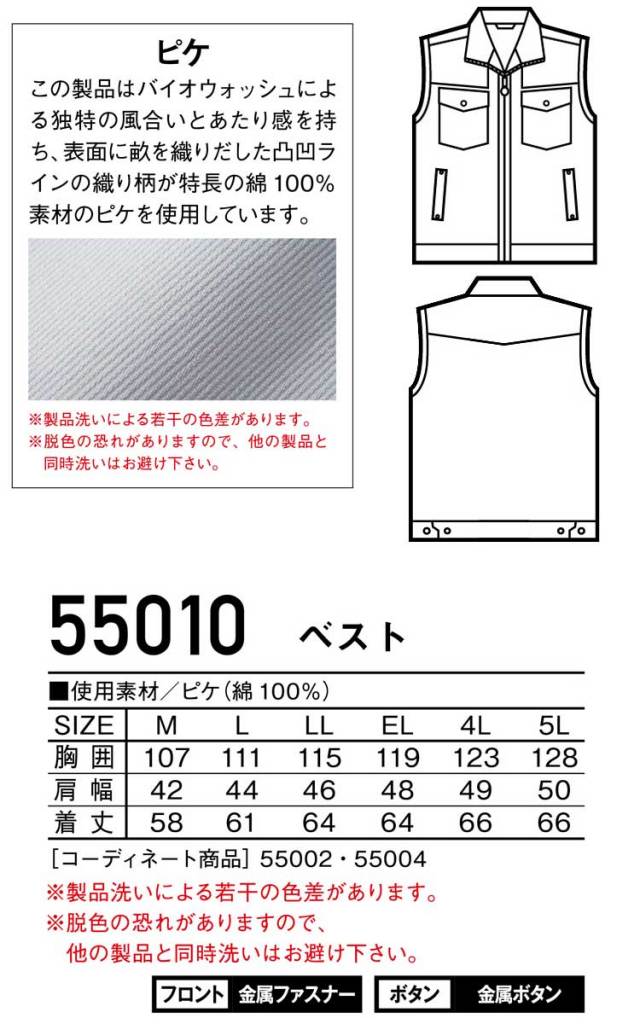 作業服 Jawin ジャウィン ベスト 55010 春夏 自重堂