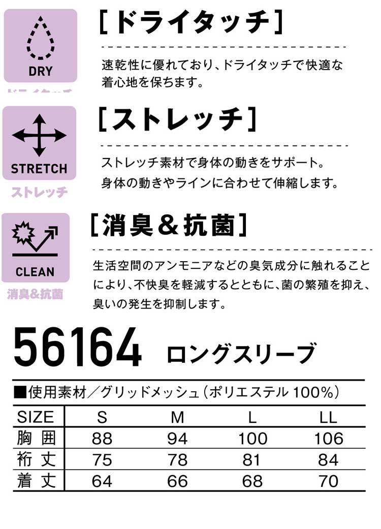 56164シリーズ。ドライ×機能的なカッティング。暑い夏に最適。ドライタッチインナーです。