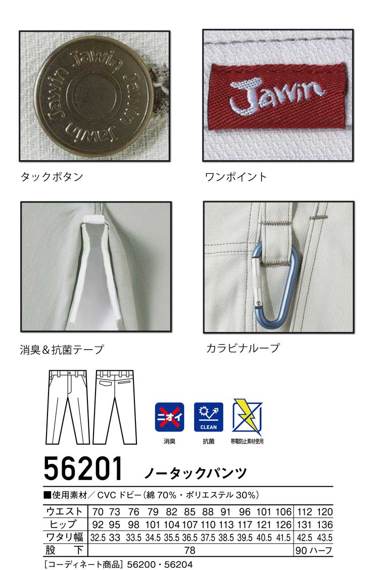 製品名: 作業服 Jawin ジャウィン ノータックパンツ 56201 春夏 自重堂