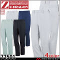 ジードラゴンの作業服72500シリーズです。動きやすさと機能性を兼ね備えた配色使いのカジュアルストレッチパンツです。製造業・運送業・建設業などあらゆる現場に対応する帯電防止JIS T8118適合作業服です。男性・女性ともに着用可能シリーズなので、ペアコーディネートができる作業服です。