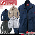 ジードラゴンの作業服72600シリーズです。丈夫で伸縮性に優れたストレッチ長袖ジャンパーです。あらゆる現場に対応するストレッチカジュアルワークウェア。男性・女性ともに着用可能シリーズなので、ペアコーディネートができる作業服です。