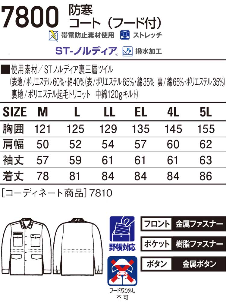 防寒着 防寒服 作業服 自重堂 防寒コート 7800