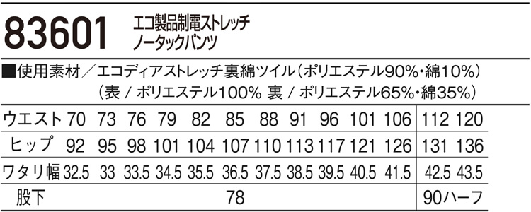 製品名: 製品制電ストレッチノータックパンツ