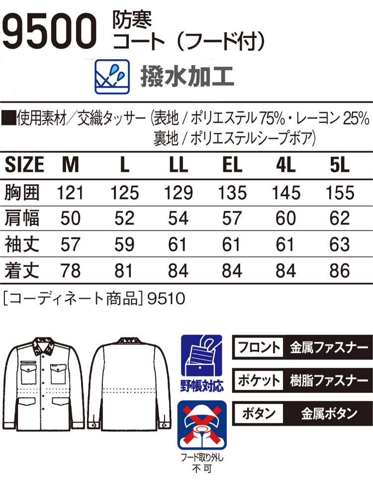 防寒着 防寒服 作業服 自重堂 防寒コート 9500