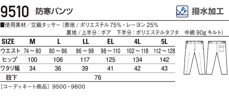 防寒着 防寒服 作業服 自重堂 防寒パンツ 9510