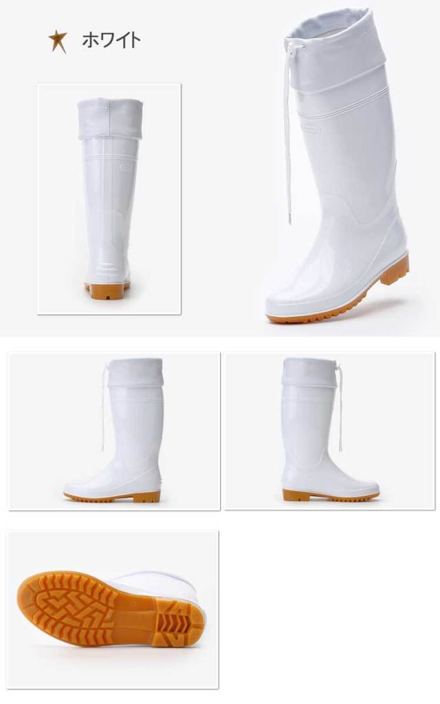 抗菌加工・耐油仕様のPVC長靴。水や異物の侵入を防ぐフード付きタイプ。取り外しが可能なインソールの下には凹凸があり、空気を循環し長靴内のムレを軽減します。長靴の中にズボンを入れてもズレ上がりにくいズボン止めを採用。食品加工・食堂関連に最適です。