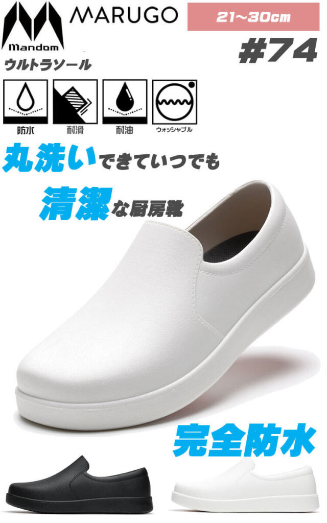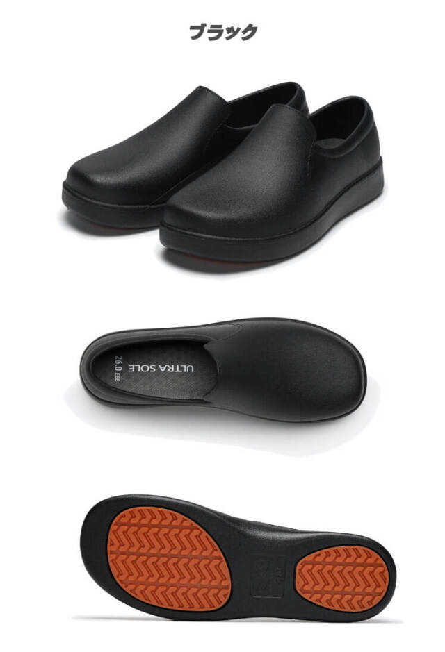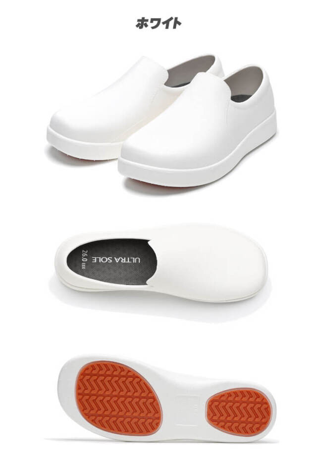 ワイド形状でゆったり履けて、ソールにはラバーソールを採用することで、耐久性と耐滑性に優れた完全防水モデルとなっています。インソールが取り外せて丸洗いできるため、いつでも清潔な状態を保つことができます。優れたグリップ力です。幅広いサイズ展開で、食品加工や飲食店・カフェなどの厨房で働く方にオススメの、汚れや水に強いシューズです。