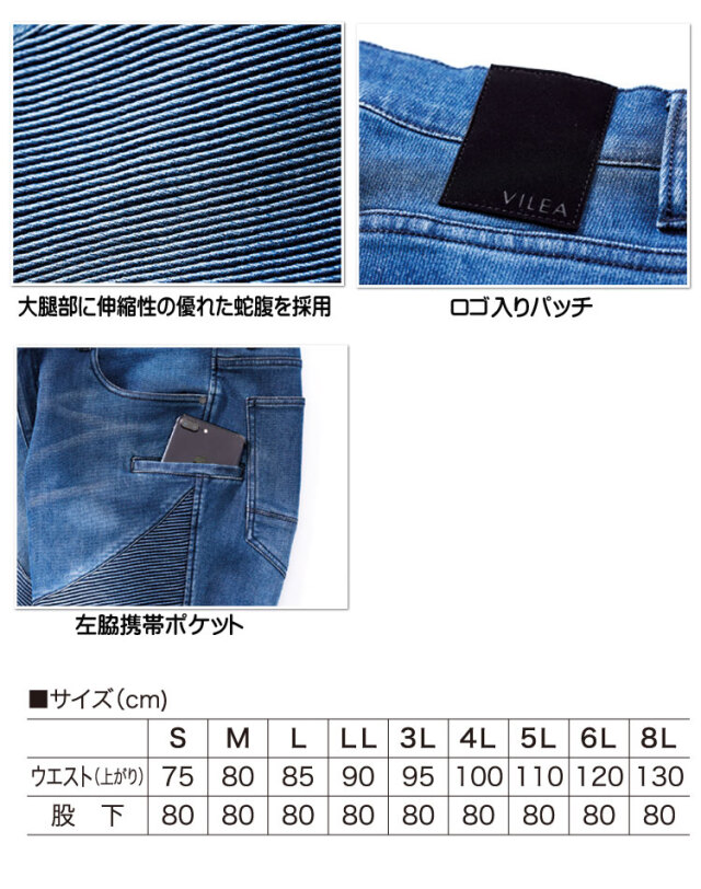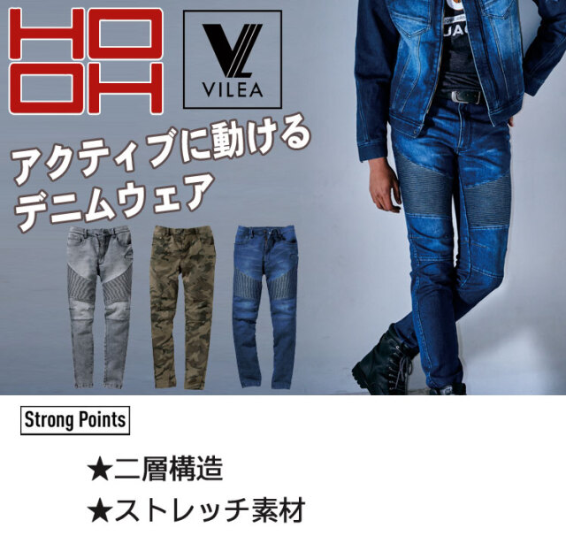 HOOH VILEA デニム蛇腹パンツ 1804 オールシーズン 通年作業服 村上被服