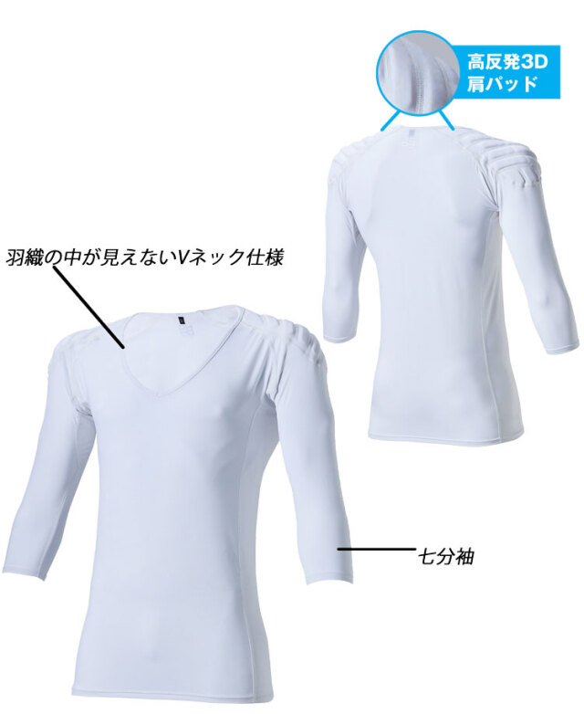 高反発3Dパッドで神輿を担ぐ際の肩への負担を軽減。冷感・消臭機能の七分袖インナーウェア