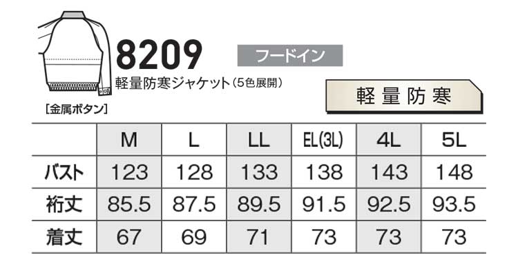 作業服 bigborn ビッグボーン 軽量防寒ジャケット 秋冬 防寒 8209