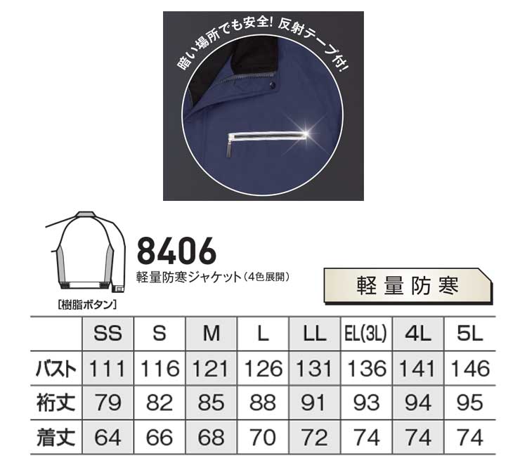 作業服 bigborn ビッグボーン 軽量防寒ジャケット 秋冬 防寒 8406