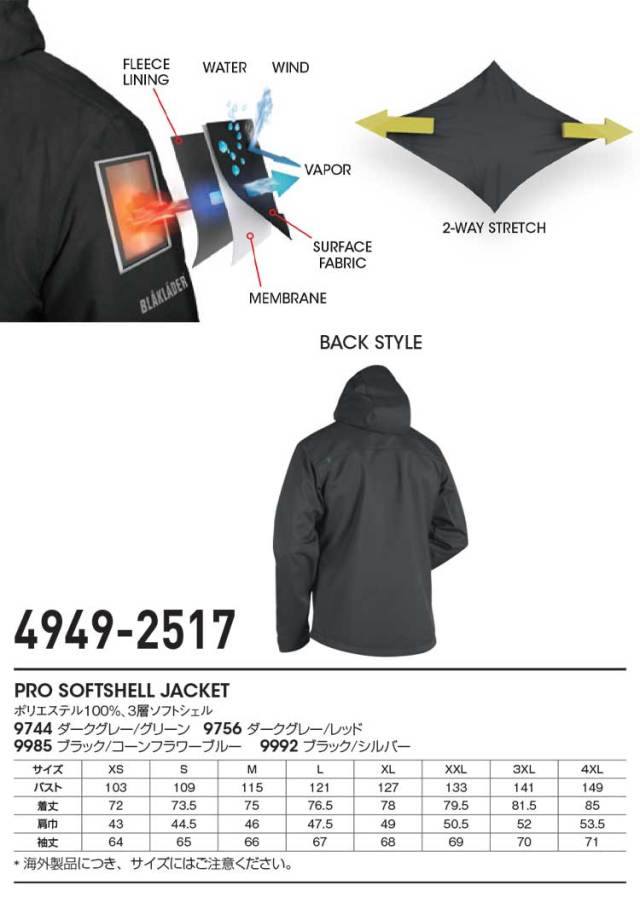 | 製品名: | 防風ストレッチソフトシェル防寒ジャケット |