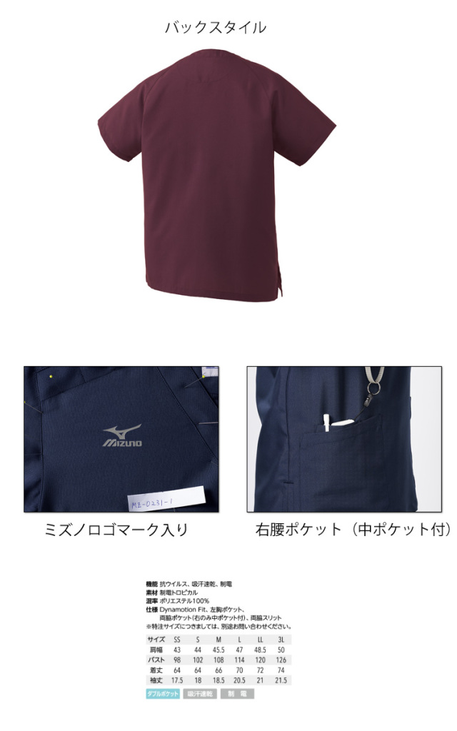 上品なツヤのある、サラッとした肌触りがうれしい快適素材です。医療現場で使い続ける事ができる高い耐久性を誇るだけでなく、感染リスクを下げる抗ウイルス加工も施し、着る人の安全を支えます。