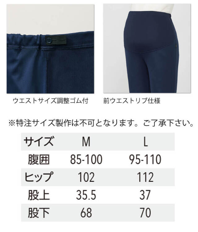 伸びるリブ素材を使用し、ウエストは調整ゴム仕様なのでお好みのフィット感になります。生地はCDMIXスムースでなめらかな肌触りと美しい光沢感です。通気性・吸汗速乾にも優れているのでムレにくく快適さをキープできます。SEK(赤)認証の制菌加工も施しています。前がウエストリブ仕様です。
