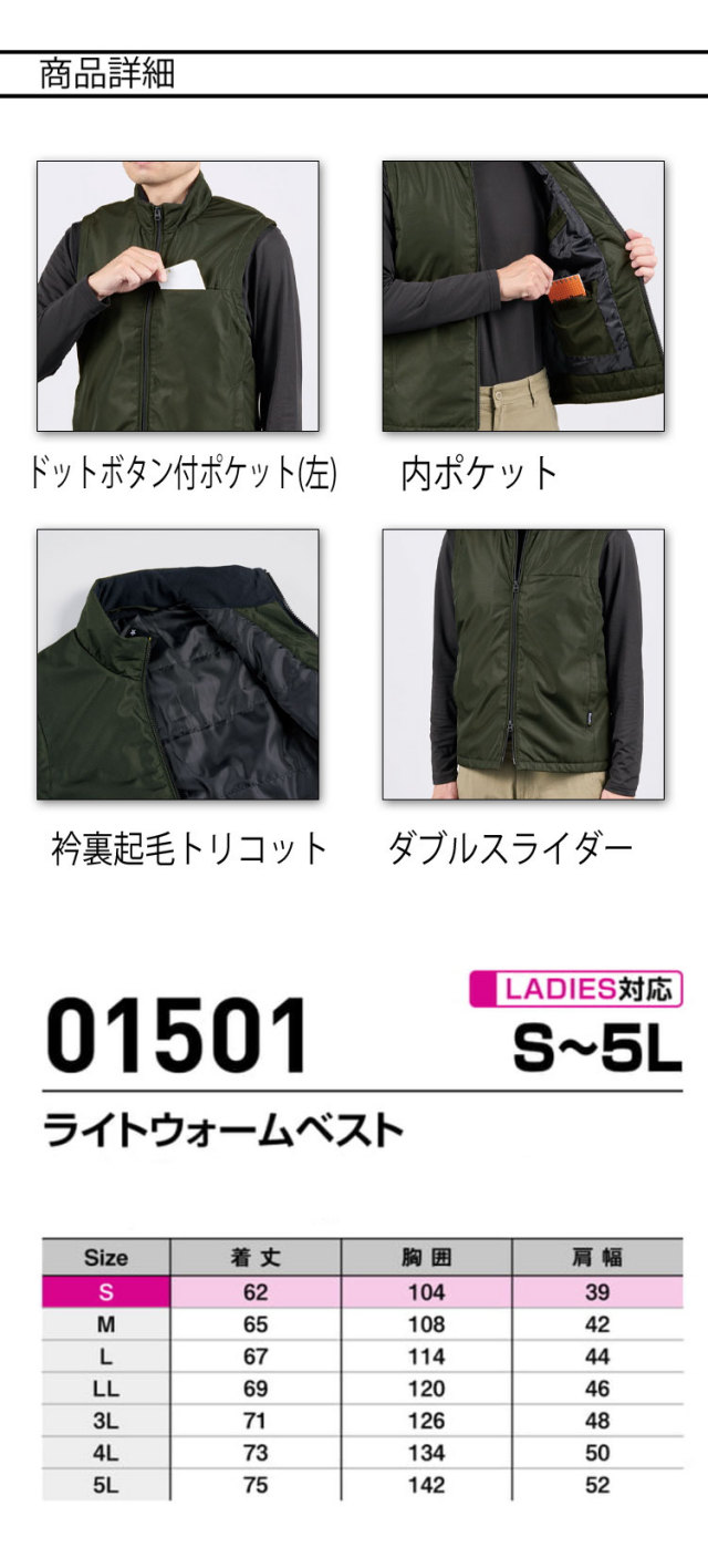 | 製品名: | 防寒服 シンメン SHINMEN ライトウォームベスト 01501 秋冬 長袖 軽防寒 作業着 |
