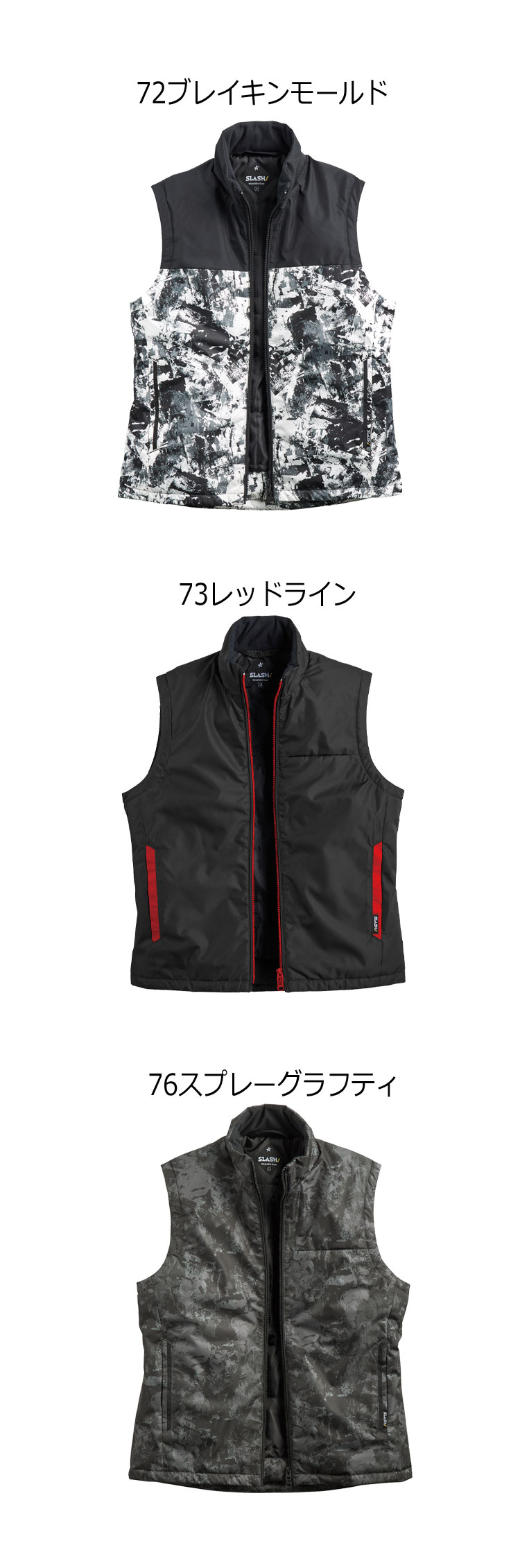 5ネイビー・6ブラック・12シルバーグレー・28ダークオリーブ・72ブレイキンモールド・73レッドライン・76スプレーグラフィティ