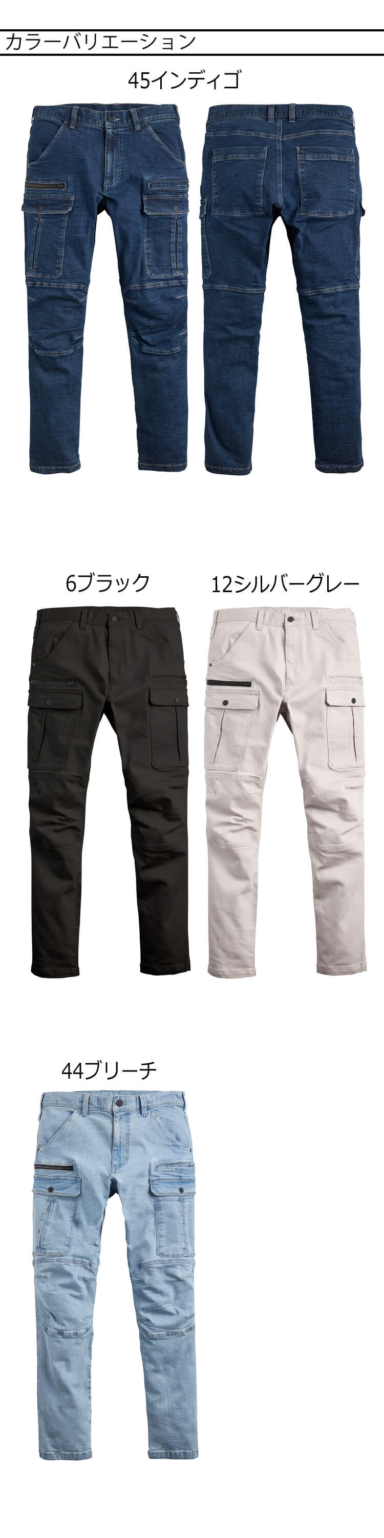 6ブラック・12シルバーグレー・44ブリーチ・45インディゴ