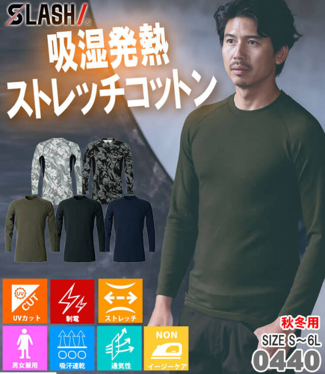 冬場に静電気が発生しにくい綿素材を丁寧に裏起毛し、より気持ちいい肌触りを目指しつつ、吸湿発熱とUVカット効果を兼ね備えた、程よいフィット感のコットンインナーです。ポリウレタンの最適配分で適度なストレッチ感を出し、吸湿発熱性とUVカット効果を有する独自素材です。