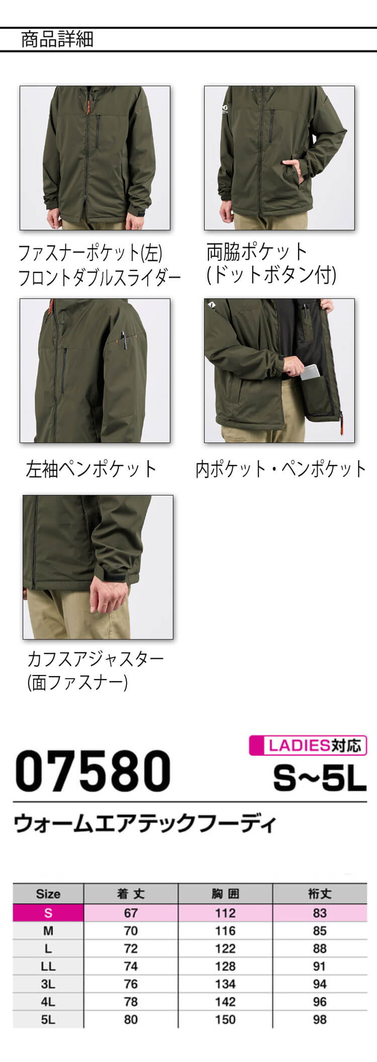 | 製品名: | シンメン SHINMEN ウォームエアテックフーディ 07580 秋冬 長袖 軽防寒 作業着 |