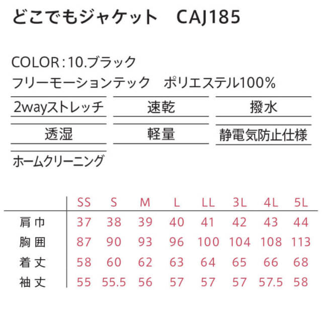 キャリーン CAREAN どこでもジャケット(レディース) CAJ185 作業着 スーツ型作業服 長袖ジャケット 通年 撥水 軽量