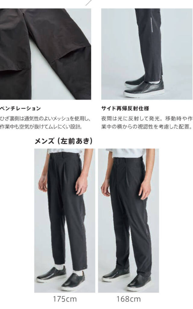 どこでもパンツ、目指したのは、着心地「無重力」。ジャケットと合わせてスーツスタイルが完成する、スタイリッシュな高機能パンツ。着用しながら換気するベンチレーション機能を搭載し、風渡る履き心地を実現。