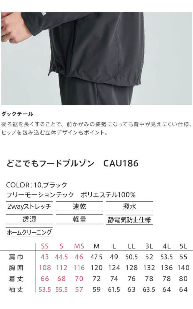 キャリーン CAREAN どこでもフードブルゾン(ユニセックス) CAU186 作業着 長袖ブルゾン 通年 撥水 軽量