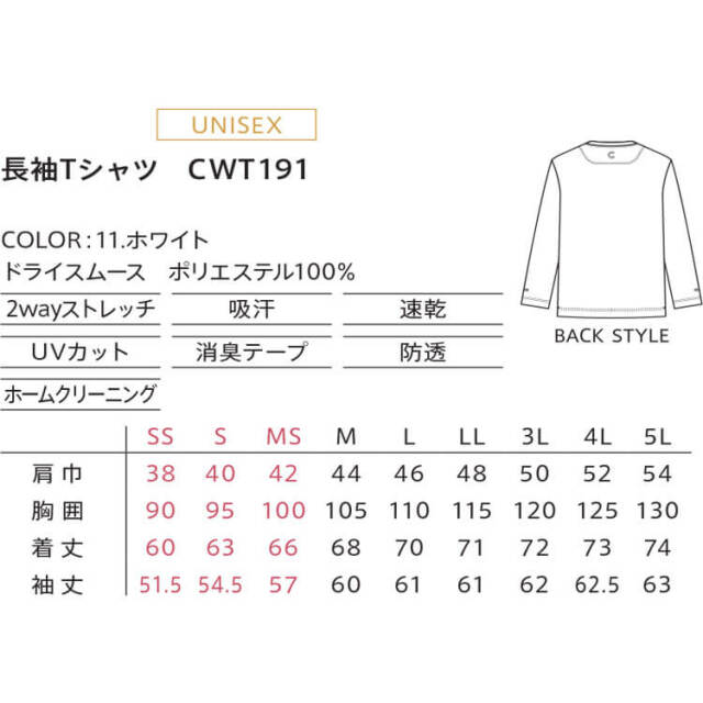 キャリーン CAREAN 長袖Tシャツ(ユニセックス) CWT191 作業服 シャツ Tシャツ 通年