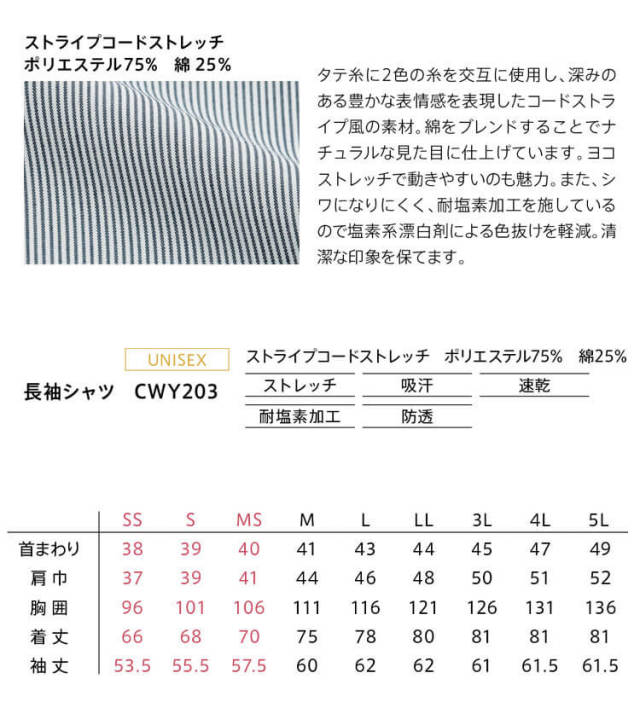素材:ストライプコードストレッチ ポリエステル75%・綿25%