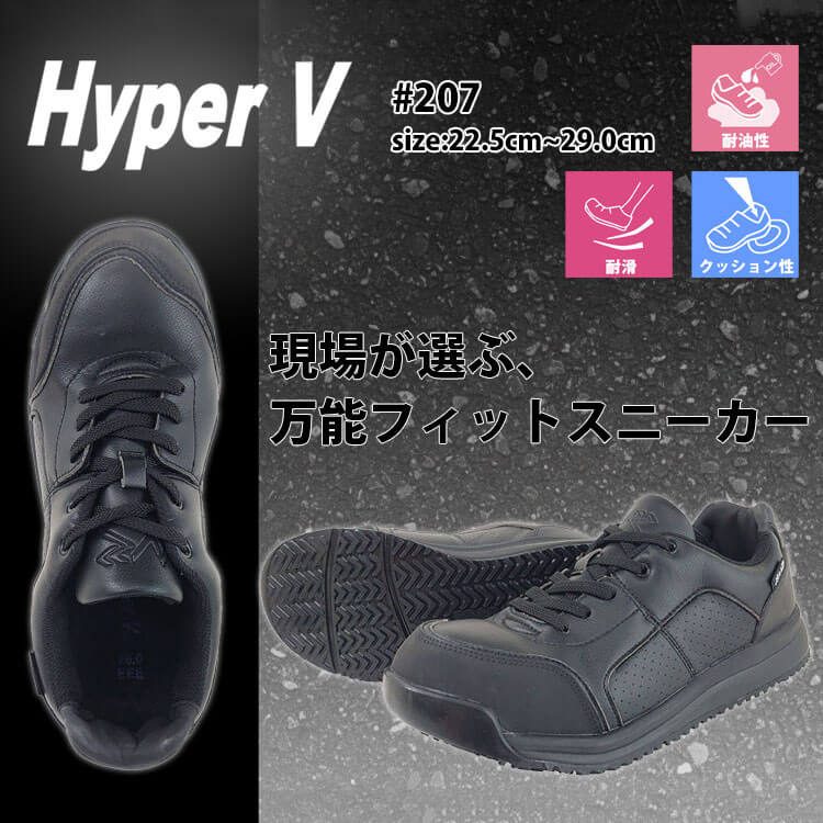 ・耐油・耐滑・クッション性に優れたHyperVソール搭載の合皮スニーカー