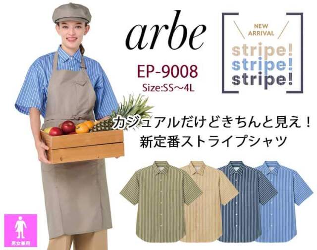 飲食サービス系ユニフォーム アルベ arbe チトセ chitose シャツ EP-9008 半袖 男女兼用 通年 抗菌防臭