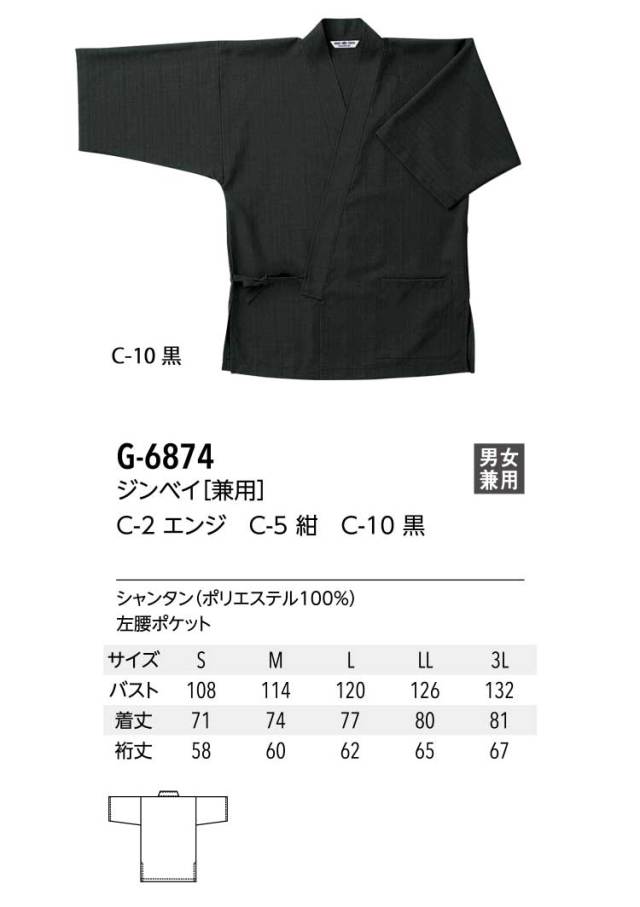 飲食サービス系ユニフォーム アルベ arbe チトセ chitose 兼用 ジンベイ G-6874 通年