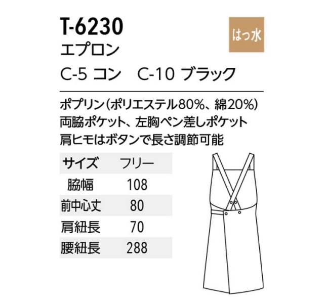 飲食サービス系ユニフォーム アルベ arbe チトセ chitose 兼用 エプロン T-6230 通年