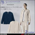 清潔感ただようシンプルデザインのワーク調ブルゾン。リラックス感のある綿タッチでしわ加工のカジュアルジャケットを、ミニマルなノーカラーデザインでスタイリッシュに。ケアワークのどんな姿勢にも対応できる新立体パターン。「Scandinavian Pattrn Collection」とは、様々な分野で活躍する北欧のデザイナー集団とコラボレーションコレクションです。