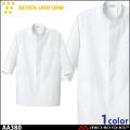 セブンユニフォームのコックコートです。男女兼用です。ナノツイル素材は、最先端の技術を駆使した100万分の1mm単位の加工によって細菌の増殖と、それに伴う悪臭の発生を強力に抑制。また、水性・油性の汚れも付きにくく、落としやすくなっています。こうした効果は、洗濯を繰り返しても衰えずに持続。素材の風合いを損なわず、ケアも従来以上に簡単な商品です。アンダーカバー(内側の布)の付いた二重構造の袖口は、幅広のゴムで絞ってあり、体毛の落下による製品への混入を防ぐ衛生使用になっています。ホテル、レストラン、洋食店、和食店、調理師、料亭、旅館、居酒屋、和カフェ、お土産店、ベーカリー、スイーツ店などどんな職種にも対応できるシャツです。