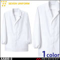 セブンユニフォームの白衣コートです。男性用です。形態安定に優れたタフ素材を、特殊プレスや耐久縫製でさらに強力に。長時間の酷使や洗濯にも、折り目やプリーツは美しさをキープ。この驚異の形態安定性と耐久力を、是非ともお仕事にお役立てください。ホテル、レストラン、洋食店、和食店、調理師、料亭、旅館、居酒屋、和カフェ、お土産店、ベーカリー、スイーツ店などどんな職種にも対応できる白衣です。
