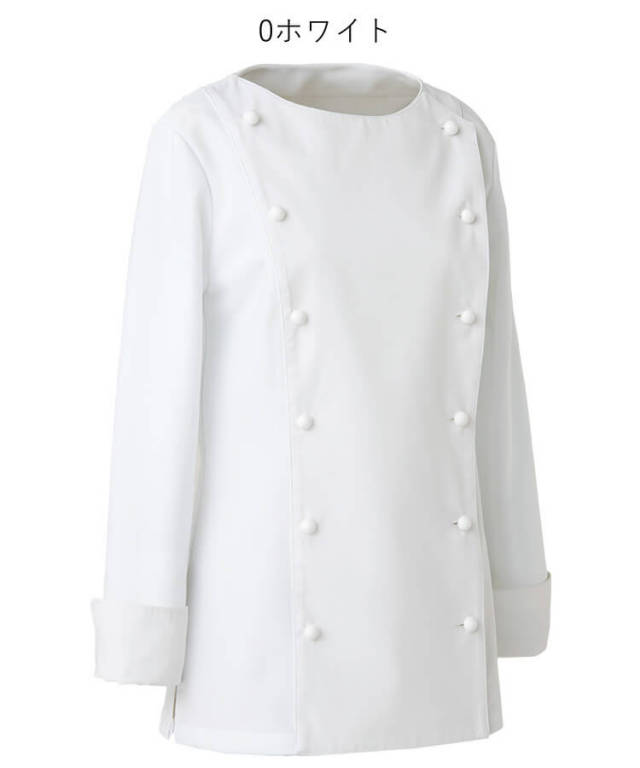 セブンユニフォームのコックコートです。女性用です。2種の素材を、それぞれの特徴を活かして配したデザイン。動きのある箇所は伸縮性のある「トリコット」、汚れやすい箇所には抗菌防臭・撥水撥油効果のある「ナノツイル」を使用。トリコット素材は、織りと編みの中間的な風合いをもつ。伸縮性にすぐれ、しなやかでシルキーな艶があります。ナノツイル素材は、最先端の技術を駆使した100万分の1mm単位の加工によって細菌の増殖と、それに伴う悪臭の発生を強力に抑制。また、水性・油性の汚れも付きにくく、落としやすくなっています。こうした効果は、洗濯を繰り返しても衰えずに持続。素材の風合いを損なわず、ケアも従来以上に簡単な商品です。ホテル、レストラン、洋食店、和食店、調理師、料亭、旅館、居酒屋、和カフェ、お土産店、ベーカリー、スイーツ店などどんな職種にも対応できるシャツです。