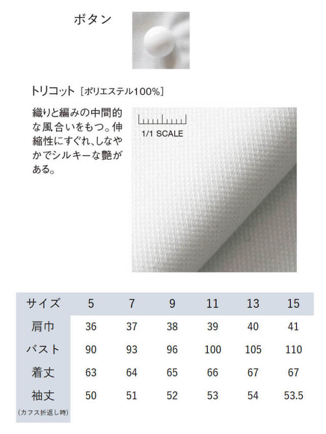 後身頃・脇・袖 : トリコット ポリエステル100%