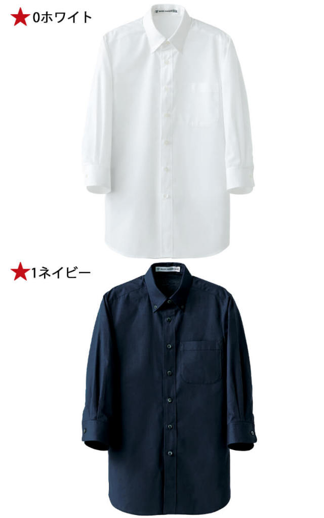 飲食サービス系ユニフォーム セブンユニフォーム 七分袖ボタンダウンシャツ CH4454 男女兼用 SEVEN UNIFORM 白洋社