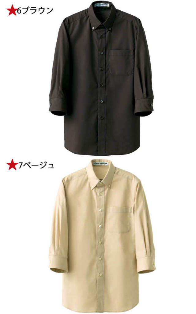 飲食サービス系ユニフォーム セブンユニフォーム 七分袖ボタンダウンシャツ CH4464 男女兼用 SEVEN UNIFORM 白洋社