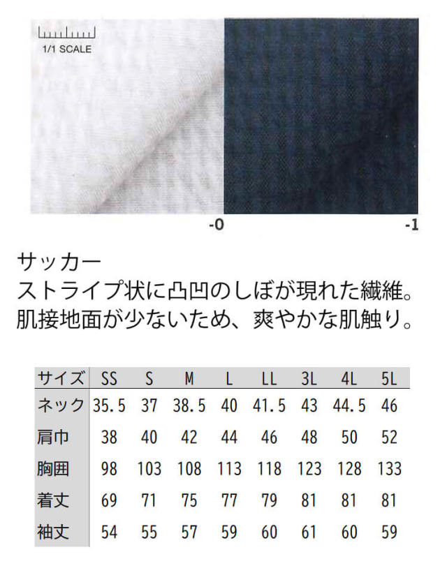 セブンユニフォームのボタンダウンシャツです。男女兼用です。ストライプ状に凸凹のしぼが現れた繊維です。肌接地面が少ないため爽やかな肌触りが特徴です。ホテル、レストラン、和食店、料亭、旅館、居酒屋、和カフェ、お土産店、ベーカリー、スイーツ店などどんな職種にも対応できるシャツです。