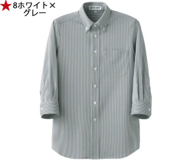 飲食サービス系ユニフォーム セブンユニフォーム 七分袖ボタンダウンシャツ CH4460 男女兼用 ストライプ SEVEN UNIFORM 白洋社