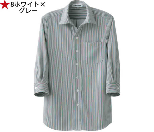 飲食サービス系ユニフォーム セブンユニフォーム 七分袖スキッパーカラーシャツ CH4462 男女兼用 ストライプ SEVEN UNIFORM 白洋社